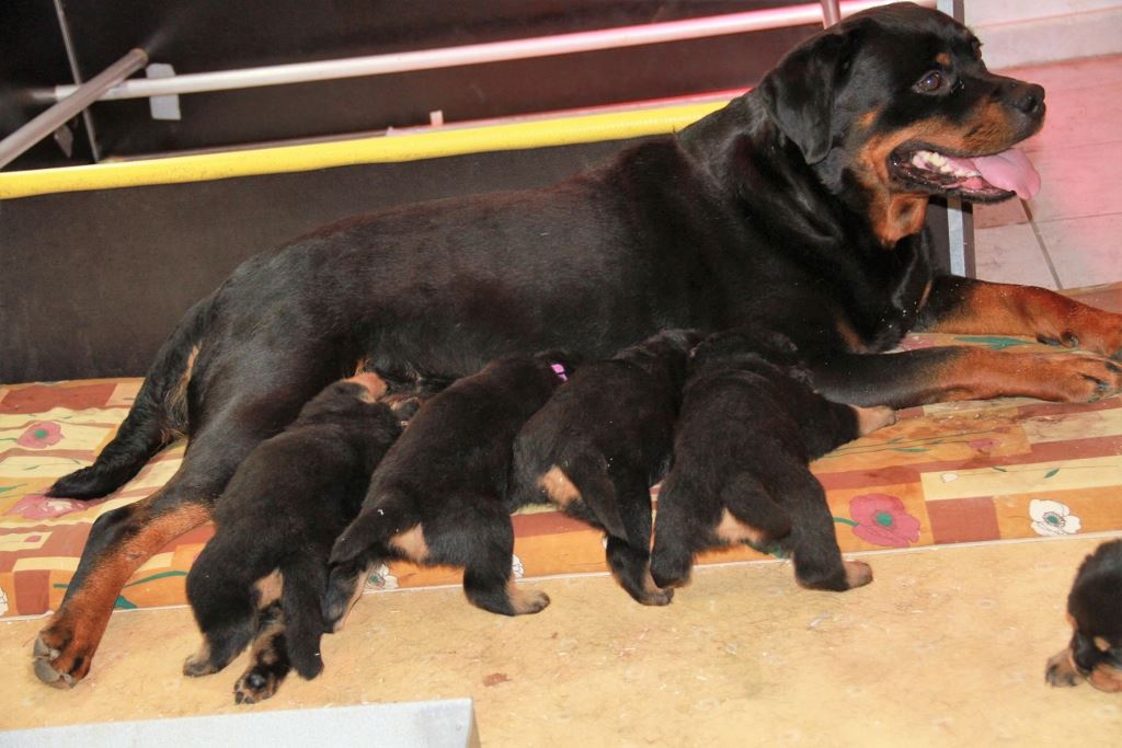 Cobra ist bis zur 8 Woche gerne noch zu ihren Welpen und hat sie trinken lassen